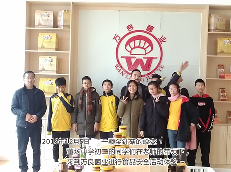 2018年,成都大学春雨教育研习社和万良周边小学及中学的同学们在老师的带领下,参加万良菌业联合学校举办的工业研学游活动。企业邀请师生们深入了解食品的加工流程,参加企业食品安全活动,确保大家的食品安全入口关,让大家享用美味、营养、卫生的食物。